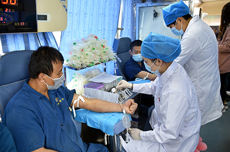 獻血隊伍中,既有工作多年的老同志,也有剛剛參加工作的新員工。獻血車就位后,員工在濱州市中心血站工作人員的指導下,認真填寫獻血登記表、測量血壓、抽血化驗,經血液檢驗合格后開始獻血。“我參加無償獻血的初衷,就是想盡自己的一點力量。”在場參與獻血的一名員工說到。簡單的一句話,展現的卻是充滿溫暖情感的無私之愛。